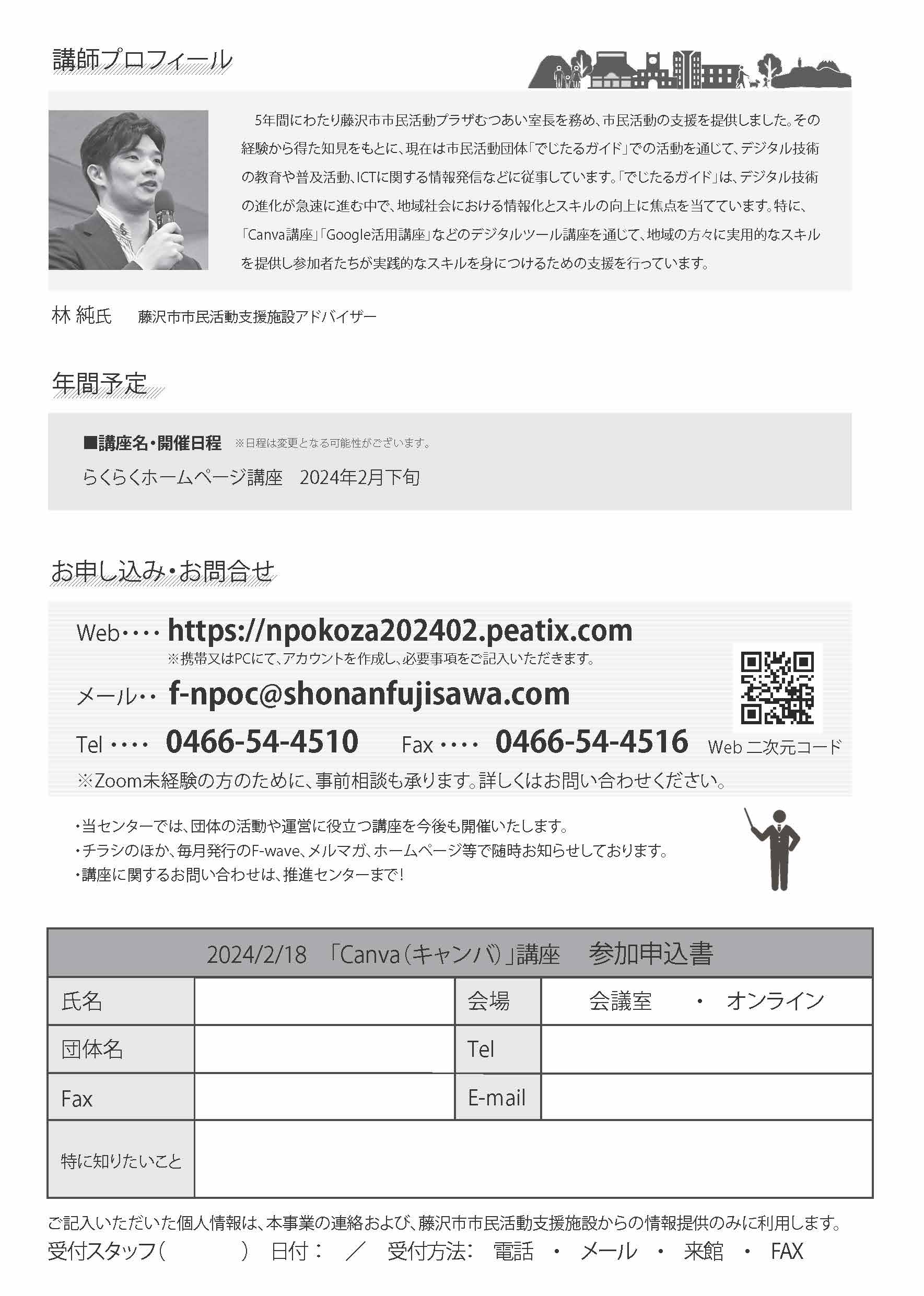会場 : 藤沢市民活動推進センター会議室 または オンライン
