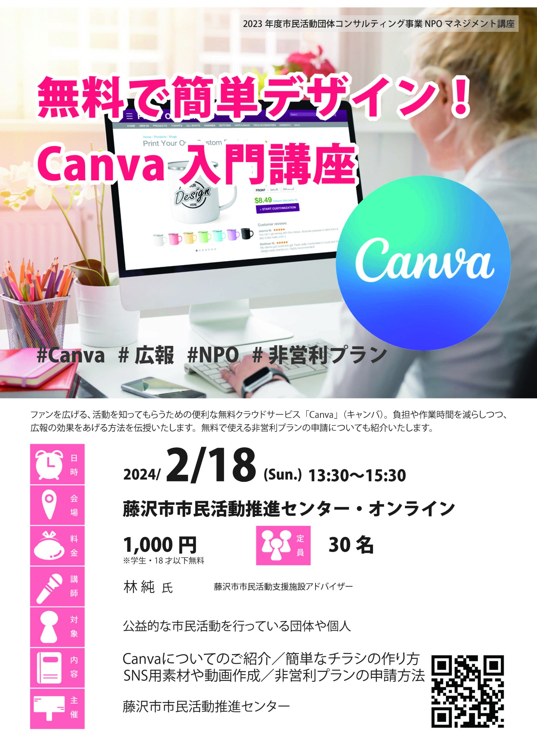 【2024/2/18(日)】無料で簡単デザイン!Canva入門講座(募集終了)