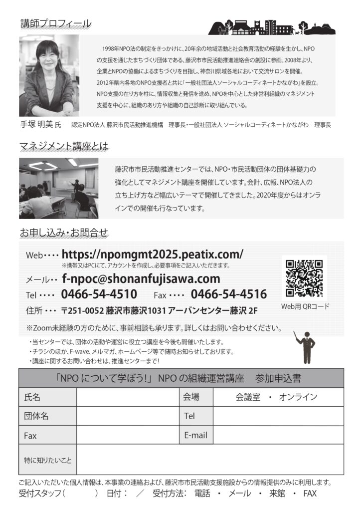 会場 :藤沢市市民活動推進センター会議室 または オンライン