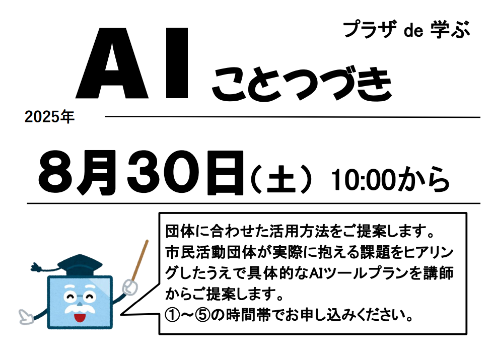 2025年5月に開催した「AIことはじめ」のアンケートや事後の相談から、団体にあわせた活用方法をご提案する機会をつくりました。市民活動団体が実際に抱える課題をヒアリングした上で、具体的なAIツールの活用プランを講師からご提案します。