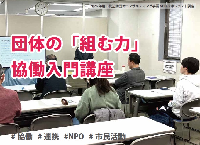 SDGsなど様々な分野で注目される「協働」。本講座は、他団体や行政・企業などと組み、活動の幅を広げる「協働」について学べる入門講座となります。