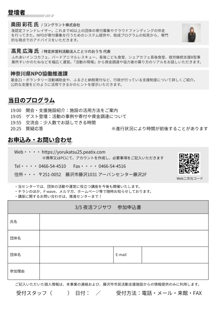 【3/5(木)】夜活フジサワ 寄付と活動資金の話をしよう