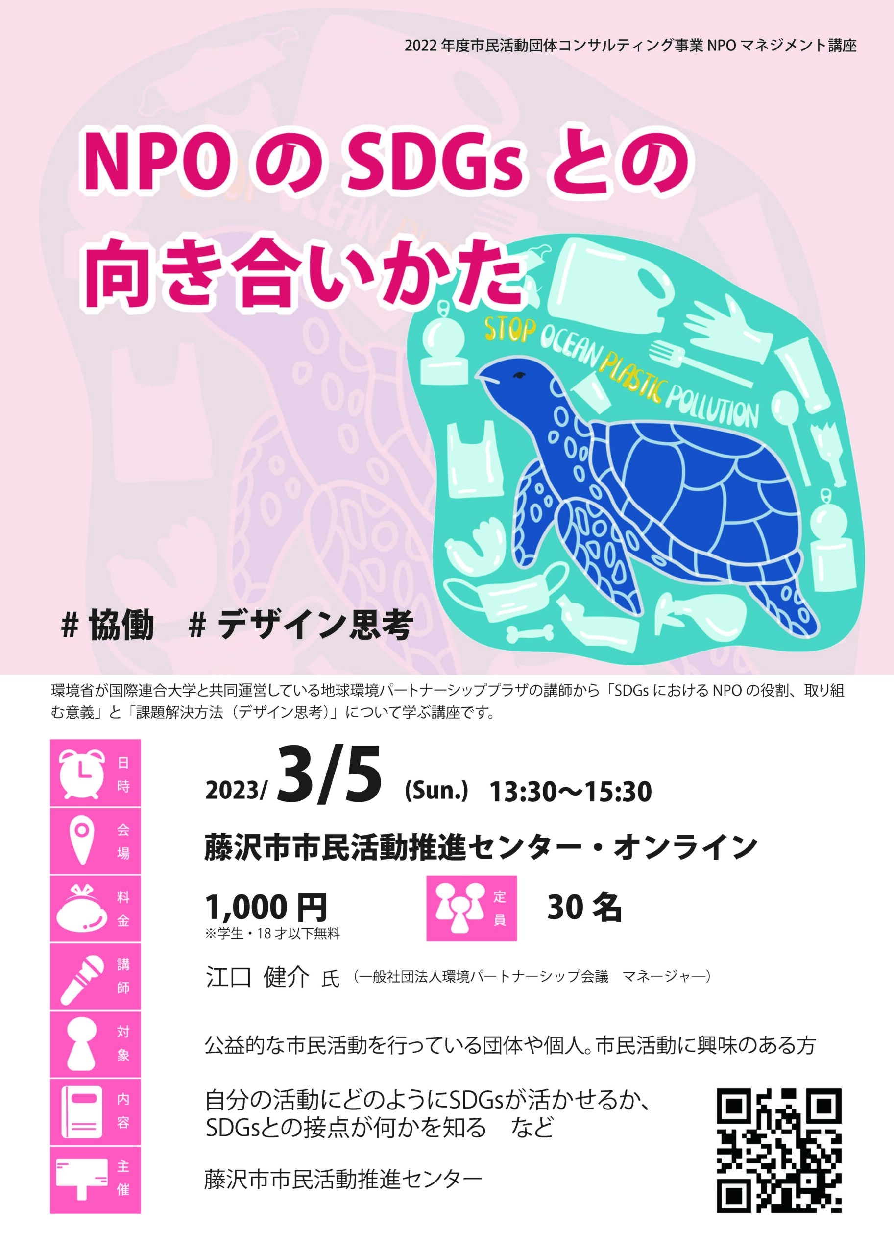 【3/5(日)】NPOのSDGsとの向き合いかた(マネジメント講座)