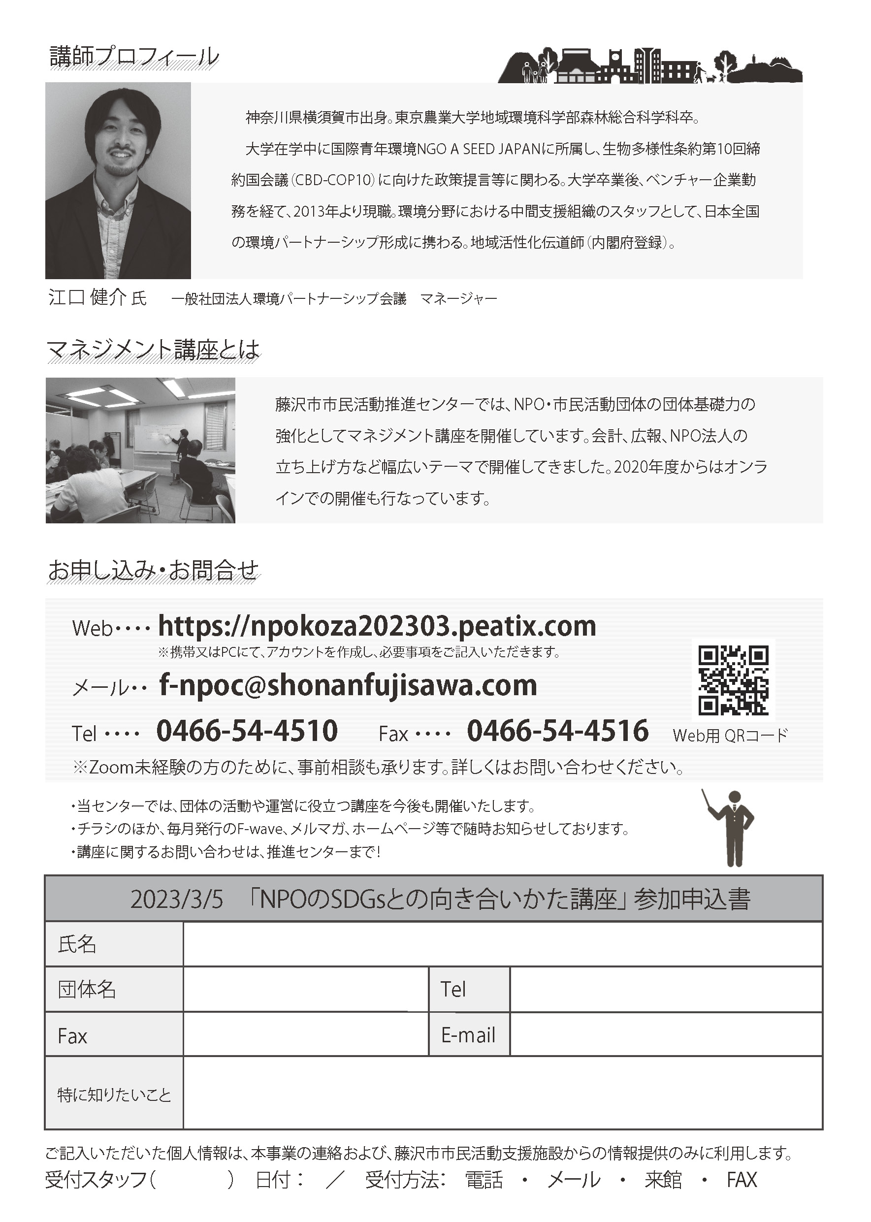 会場 : 藤沢市市民活動推進センター会議室 または オンライン