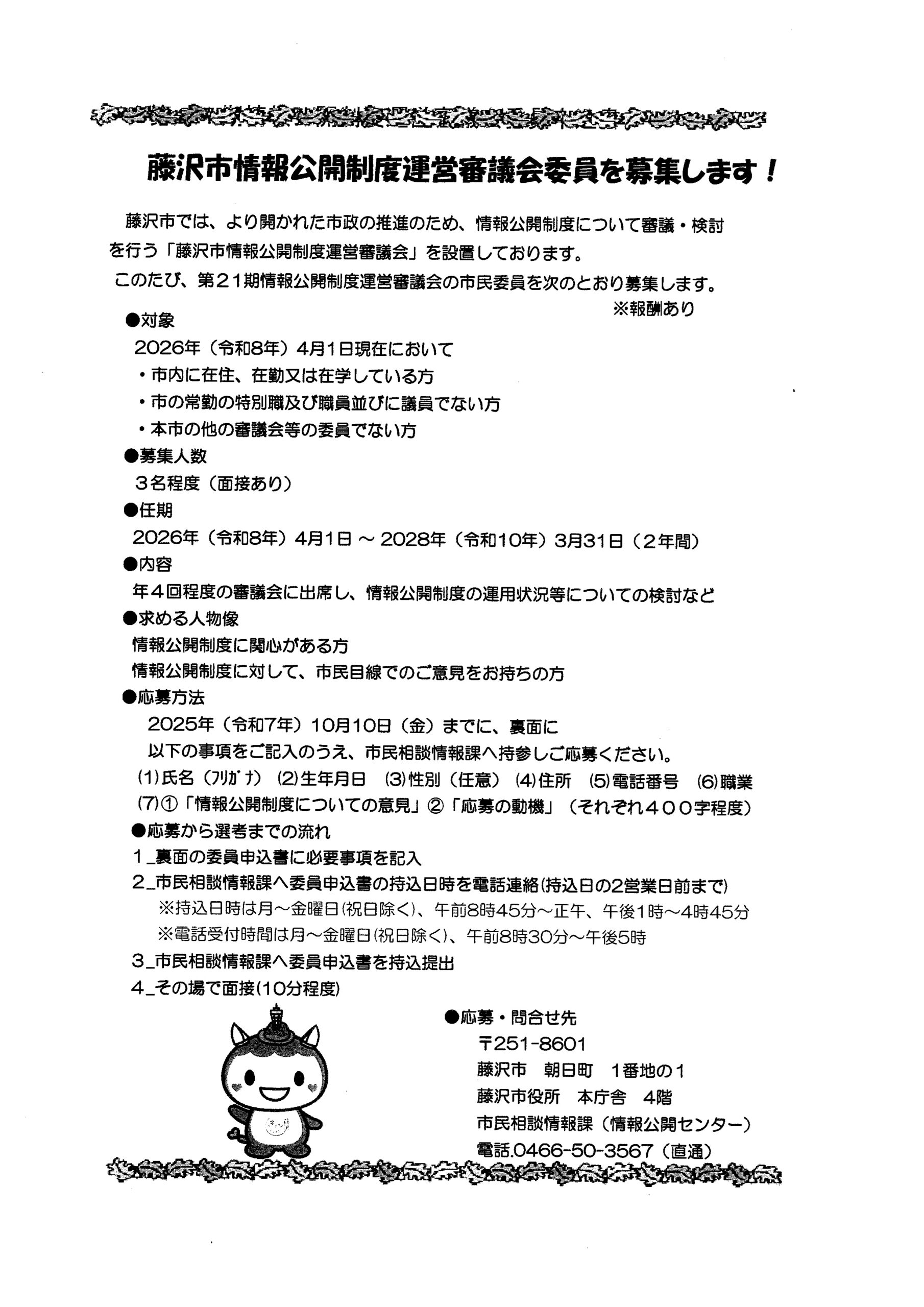 【10/10締切】藤沢市情報公開制度運営審議会委員を募集します!