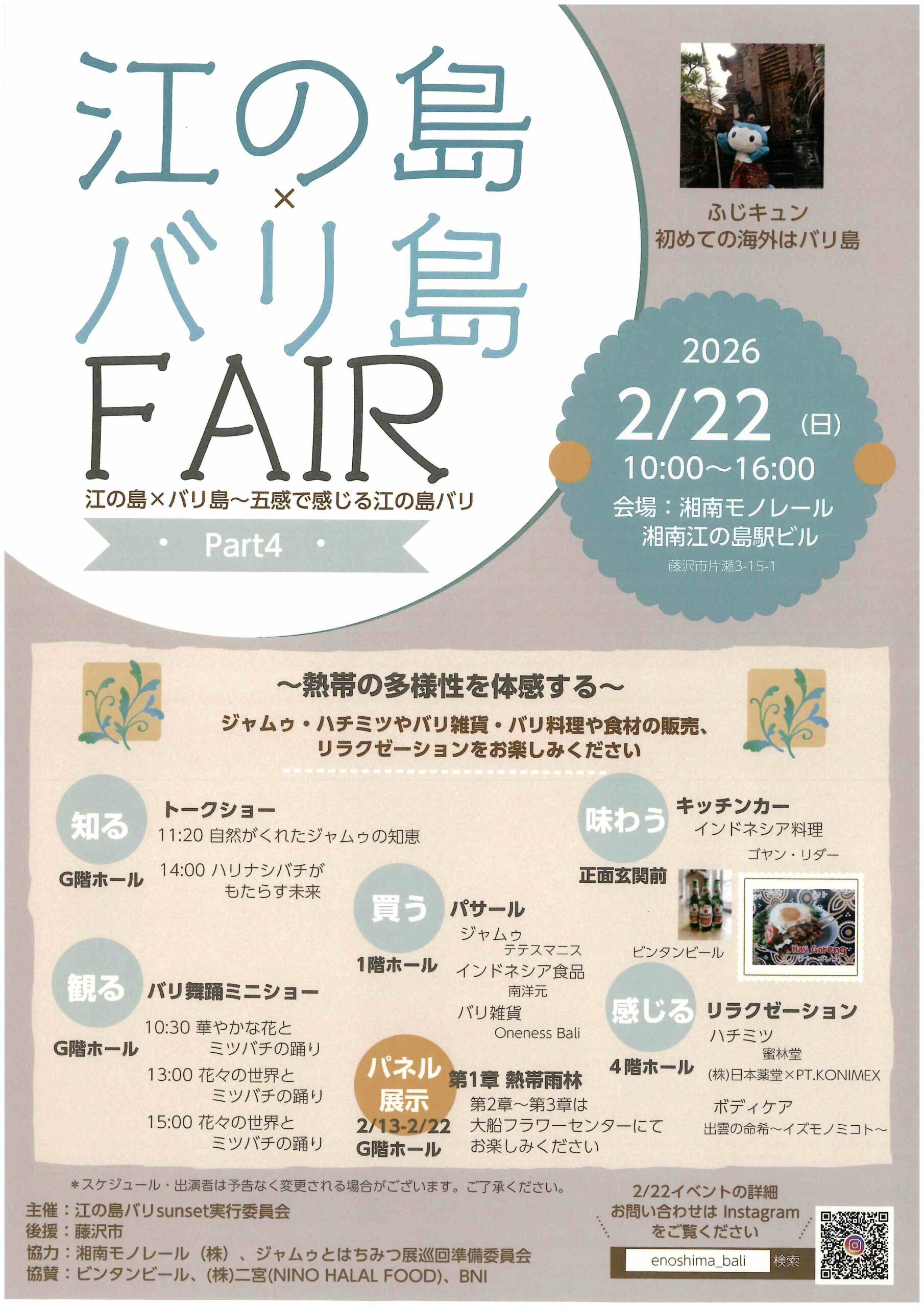 【日時】2026年2月22日(日)10:00~16:00 【場所】湘南モノレール湘南江の島駅ビル(藤沢市片瀬3-15-1) 【参加費】入場無料 PDF情報No.115256 ~熱帯の多様性を体感する~ ジャムゥ・ハチミツ […]