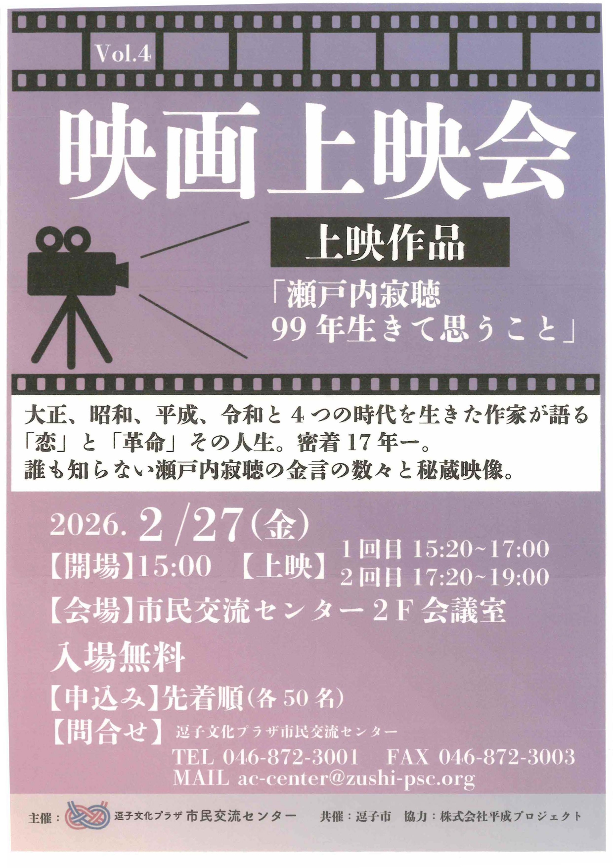 【開催日】2026年2月27日(金曜日) 【開催時間】1回目15時20分~17時00分 2回目17時20分~19時00分 【開催場所】逗子文化プラザ市民交流センター2F 会議室 【入場料等】無料 先着順(各50名) PD […]