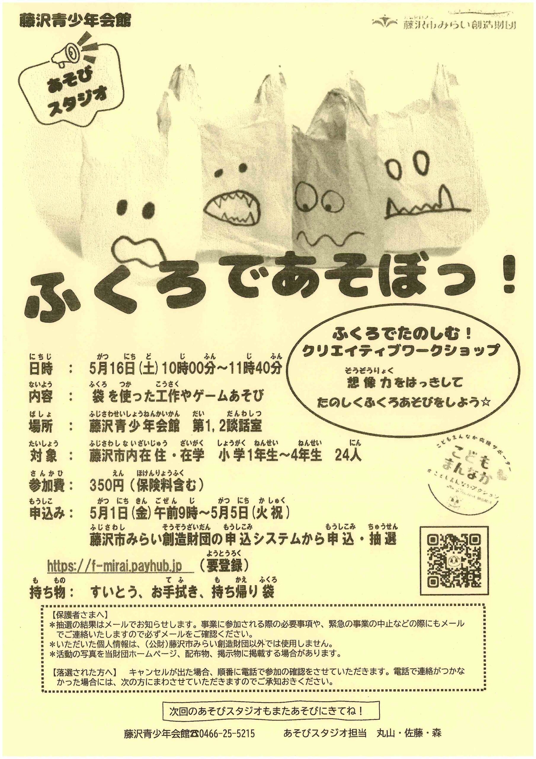 【日時】5月16日(土)10:00~11:40 【会場】藤沢市青少年会館 第1,2談話室 【対象】 藤沢市内在住・在学 小学生1年生~4年生 24人 【参加費】350円 【締切】5月1日~5日 【持ち物】すいとう、お手拭 […]