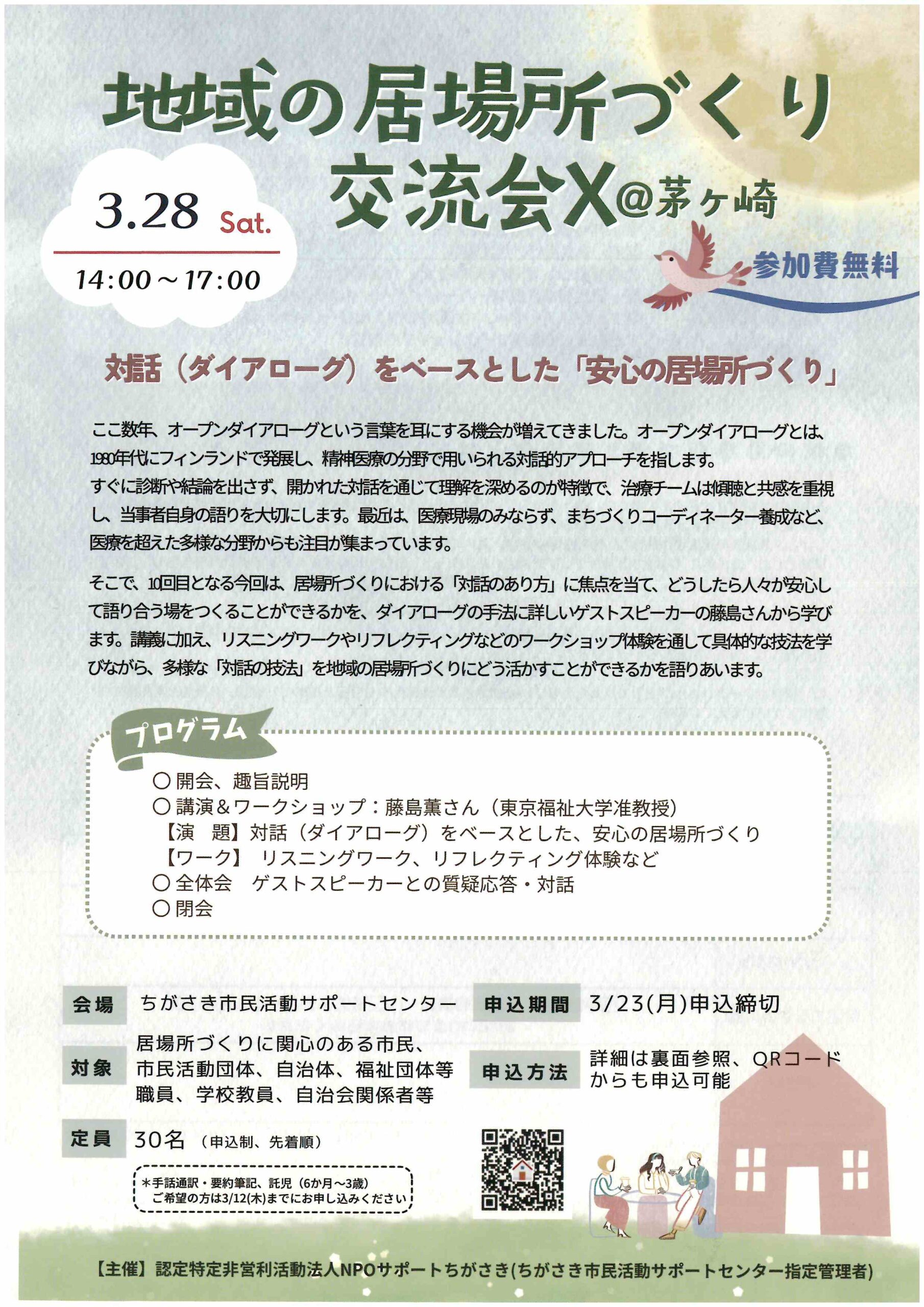 ▼日 時 2026年3月28日(土) 14:00~17:00(受付13:30~) ▼会 場 ちがさき市民活動サポートセンター フリースペース大 ▼対 象 居場所づくりに関心のある市民、市民活動団体、自治体、福祉団体等職員 […]