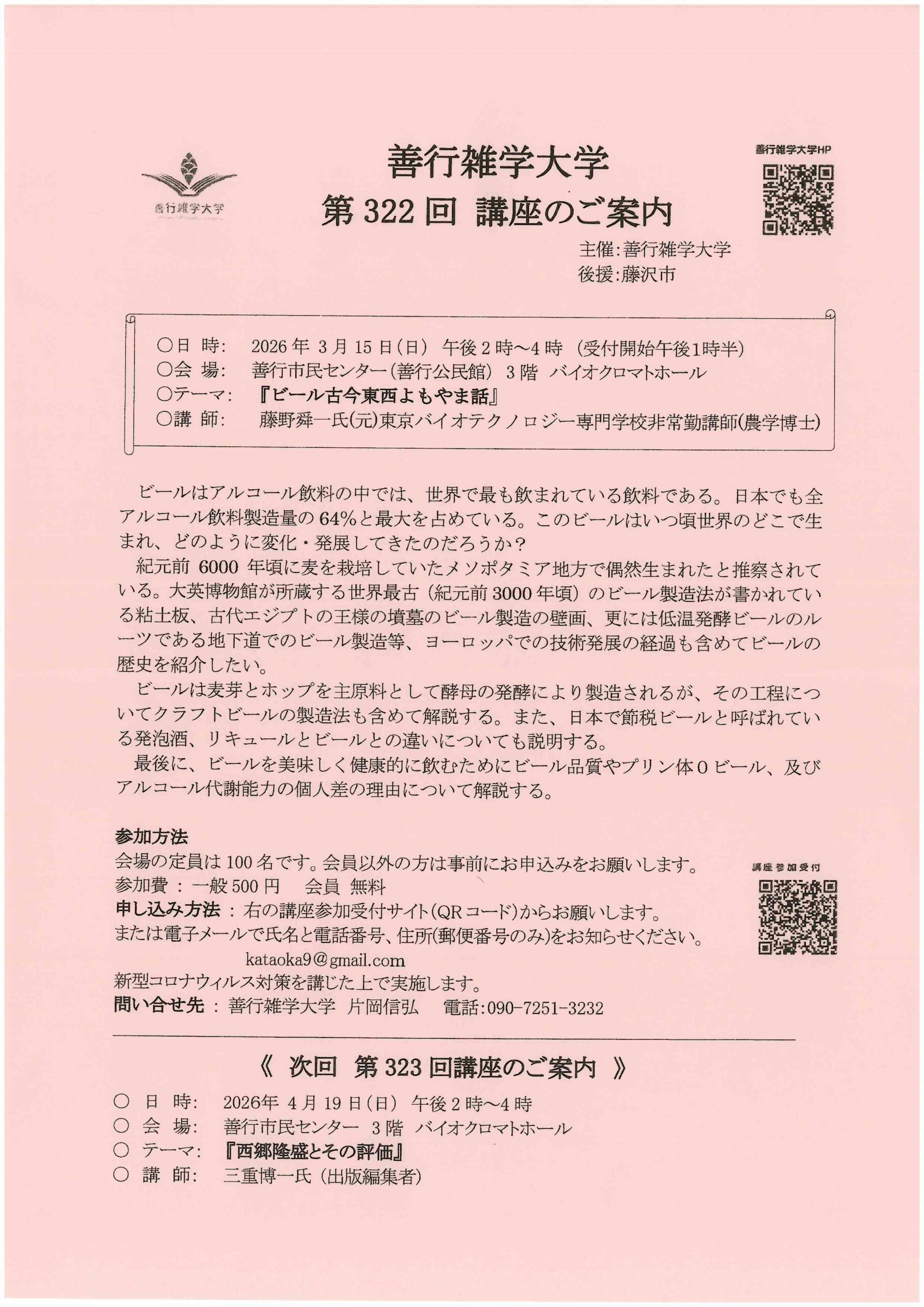 参加方法 会場の定員は100名です。会員以外の方は事前にお申込みをお願いします。 参加費: 一般500円 会員無料 PDF情報No.115191 ビールはアルコール飲料の中では、世界で最も飲まれている飲料である。日本でも […]
