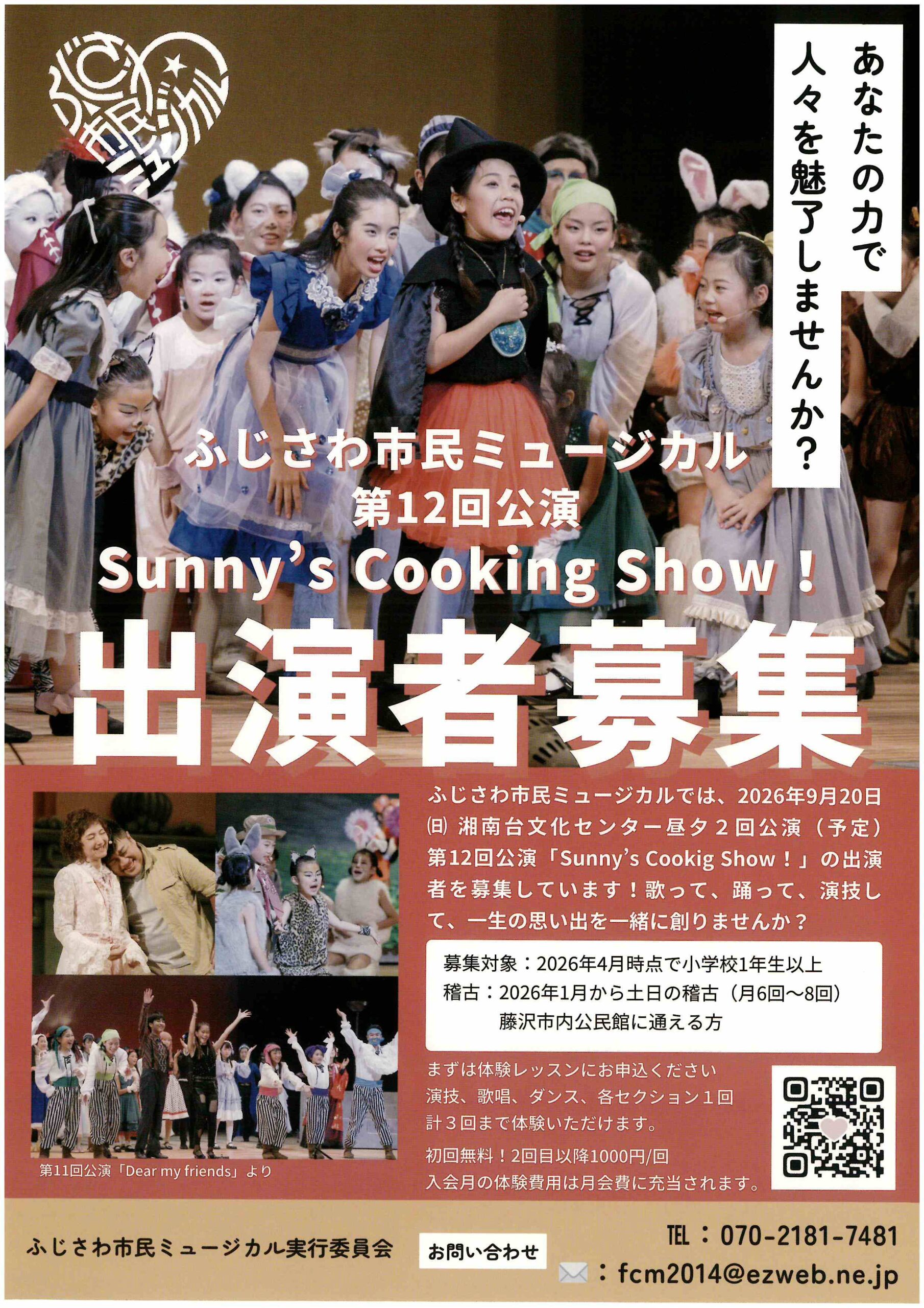 募集対象:2026年4月時点で小学校1年生以上 稽古:2026年1月から土日の稽古(月6回~8回)藤沢市内公民館に通える方 PDF情報No.114944 ふじさわ市民ミュージカルでは、2026年9月20日(日)湘南台文化 […]