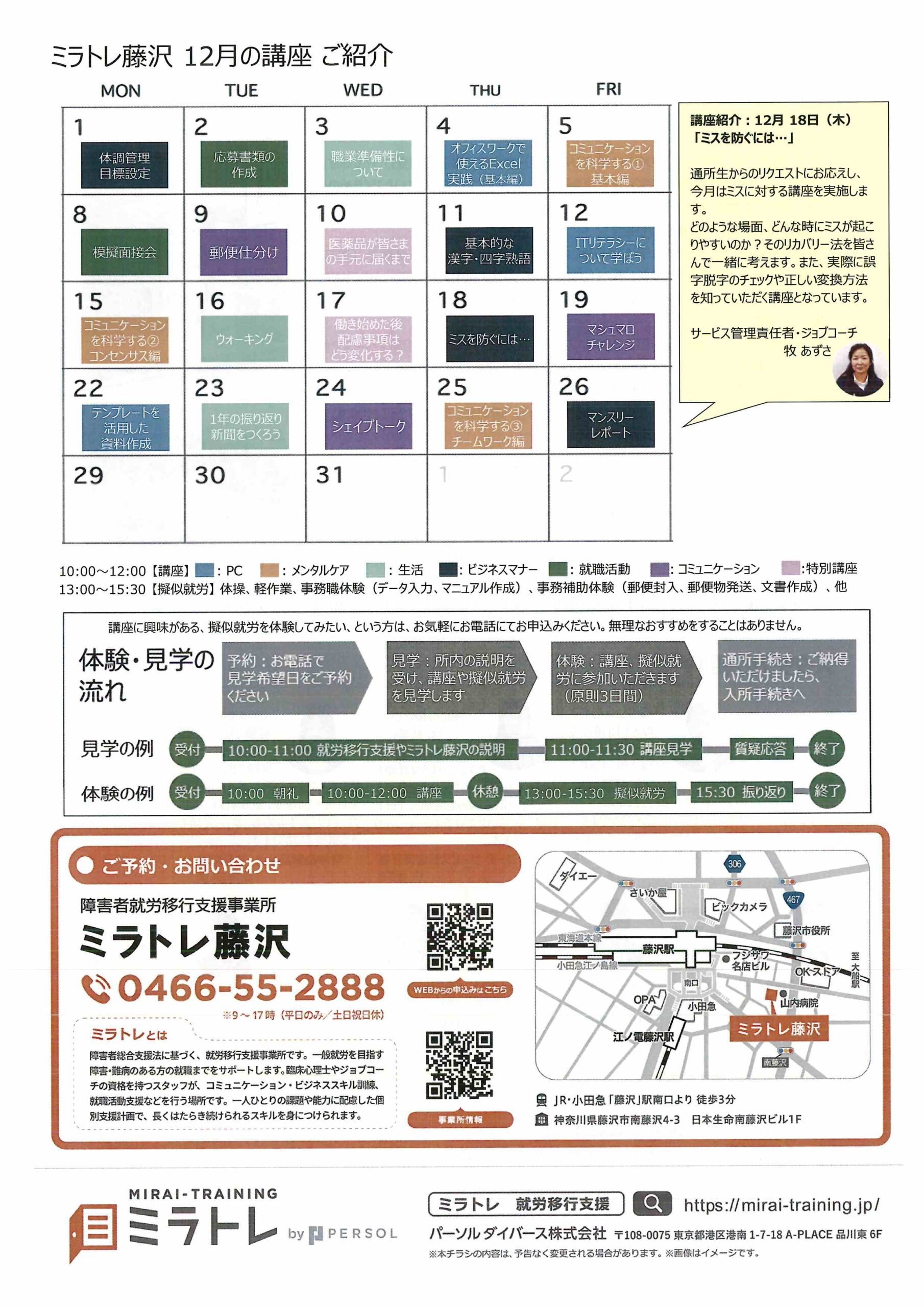 ミラトレ藤沢 12月の講座 ご紹介