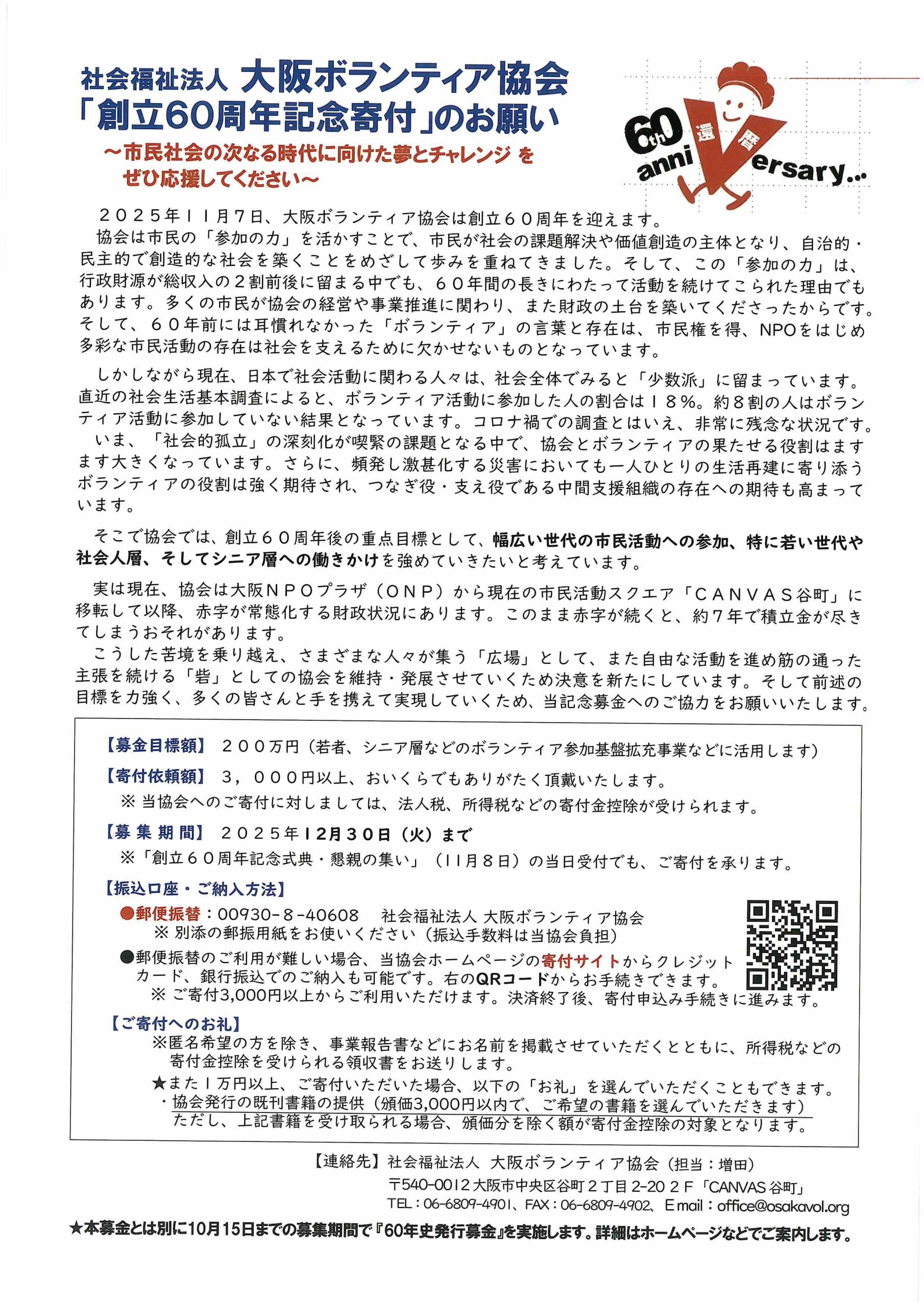 【募金目標額】200万円(若者、シニア層などのボランティア参加基盤拡充事業などに活用します) 【寄付依頼額】3,000円以上、おいくらてもありがたく頂戴いたします。 ※ 当協会へのご寄付に対しましては、法人税、所得税など […] |