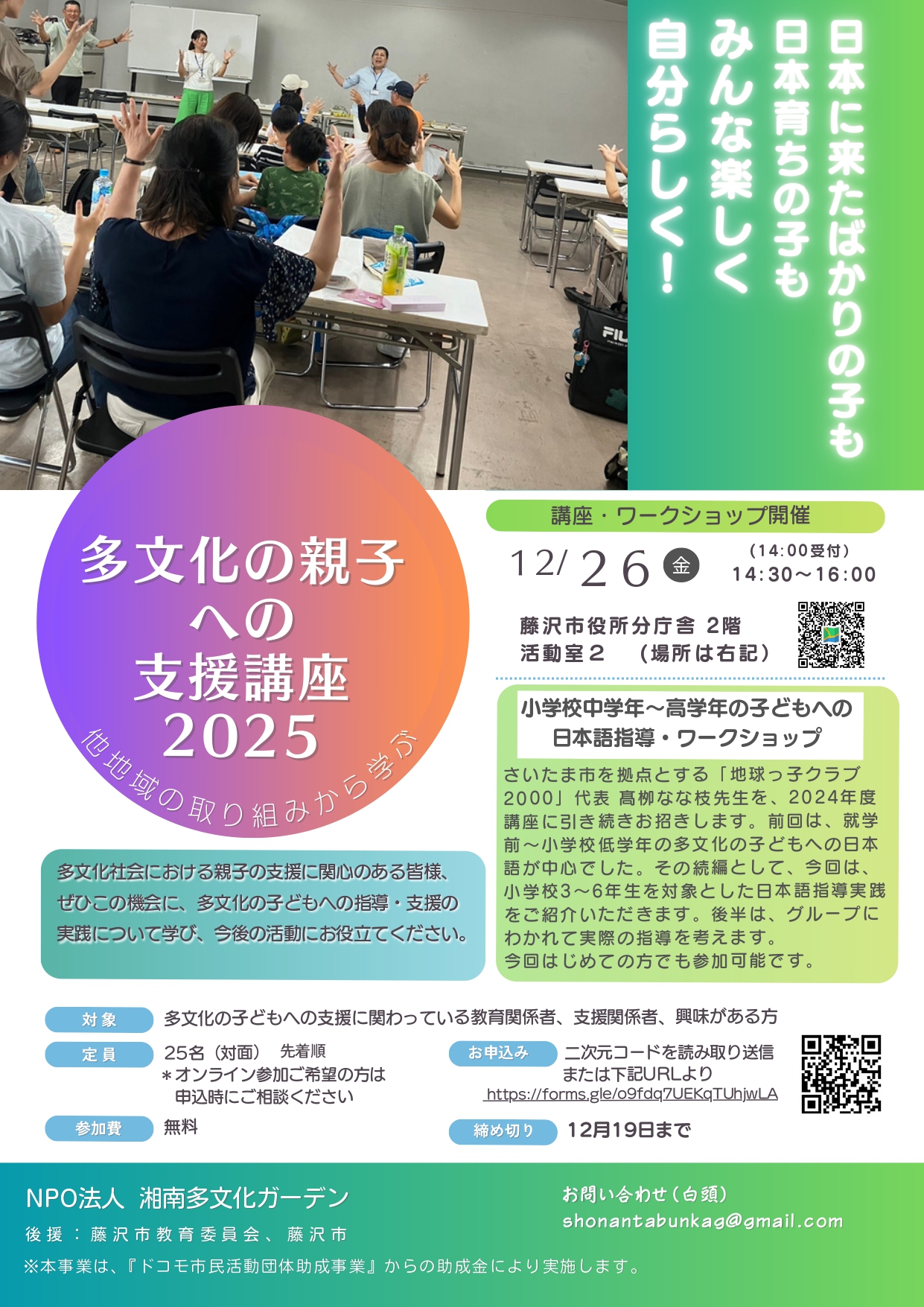 日時:2025年12日6日(土)09:00~16:30 場所:藤沢市本庁舎市民利用会議室 市民利用会議室5 対象:藤沢市および近隣地域にお住まいの方・お勤めの方 主催:一般社団法人 SG パートナーズ PDF情報No.1 […]