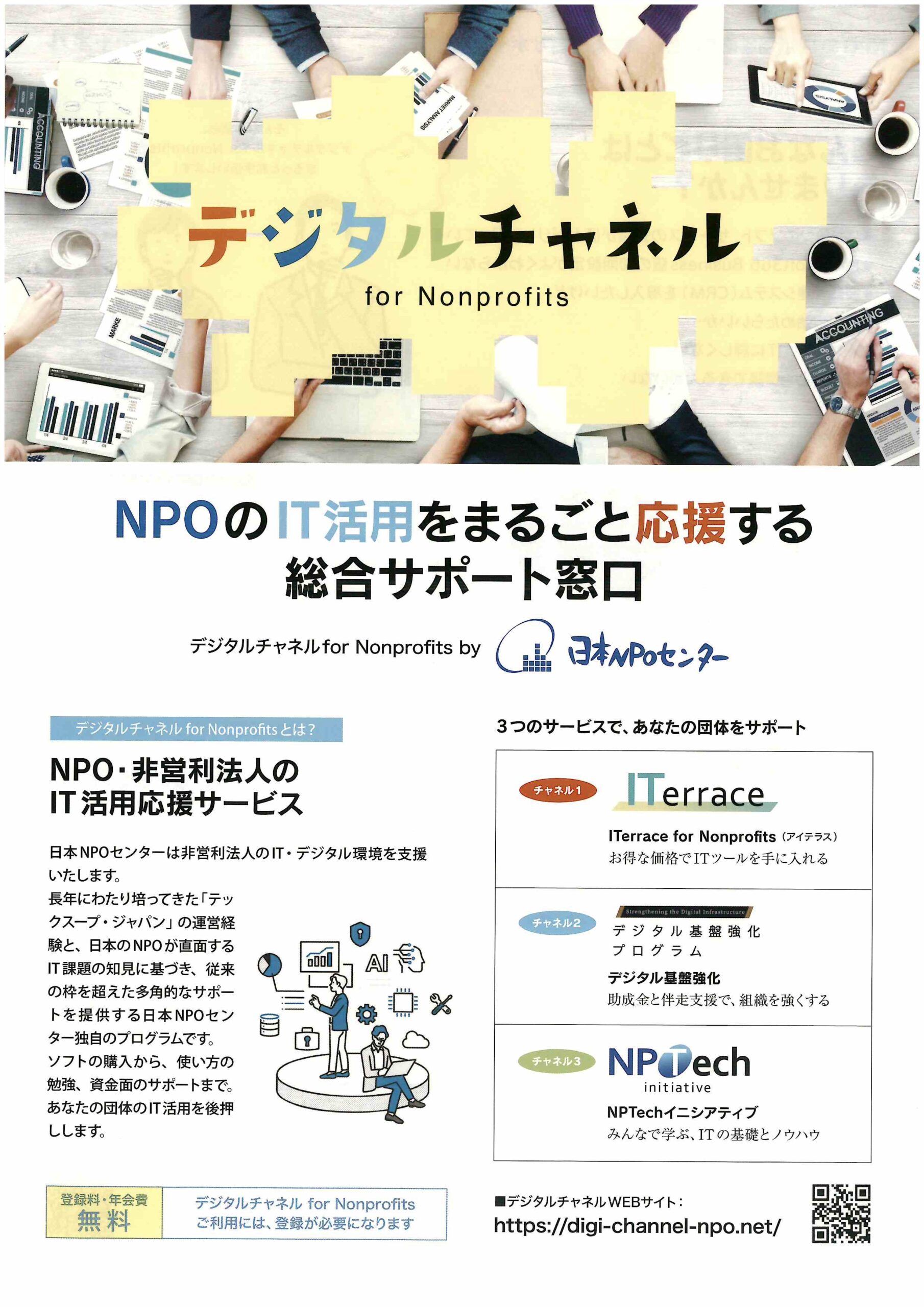 登録料・年会費無料 デジタルチャンネル for Nonprofits ご利用には、登録が必要になります PDF情報No.115125 NPOのIT活用をまるごと応援する総合サポート窓口