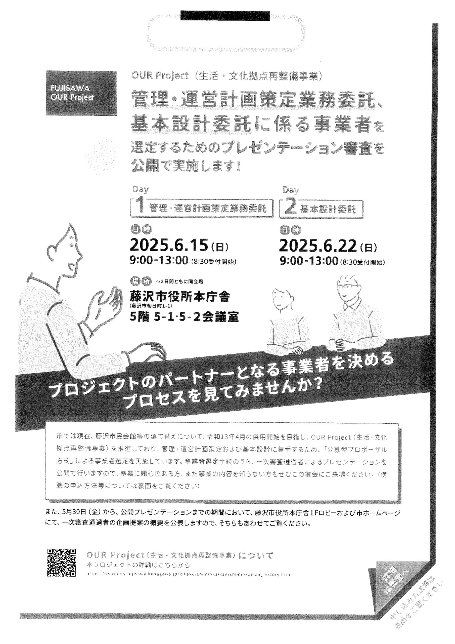 Day1 管理・運営計画策定業務委託 2025年(令和7年)6月15日(日曜日)午前9時から午後1時まで (午前8時30分開場受付) Day2 基本設計委託 2025年(令和7年)6月22日(日曜日)午前9時から午後1時 […]