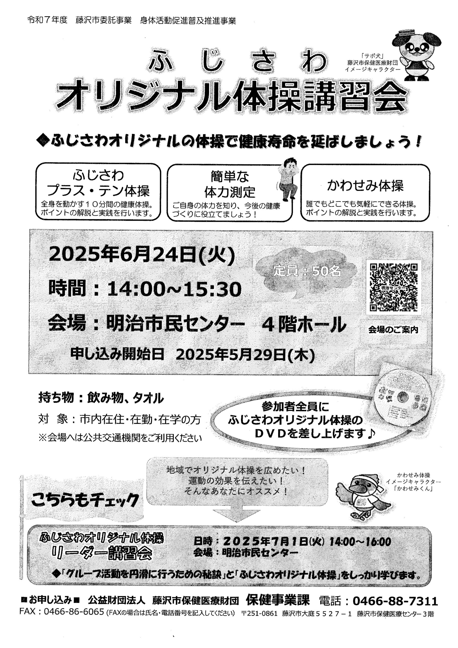 申し込み開始日:2025年5月29日(木) PDF情報No.113905 ◆「声かけ」から「体操」までしっかり学びましょう! 地域でふじさわオリジナル体操を広めて、みんなで身体を動かそう!