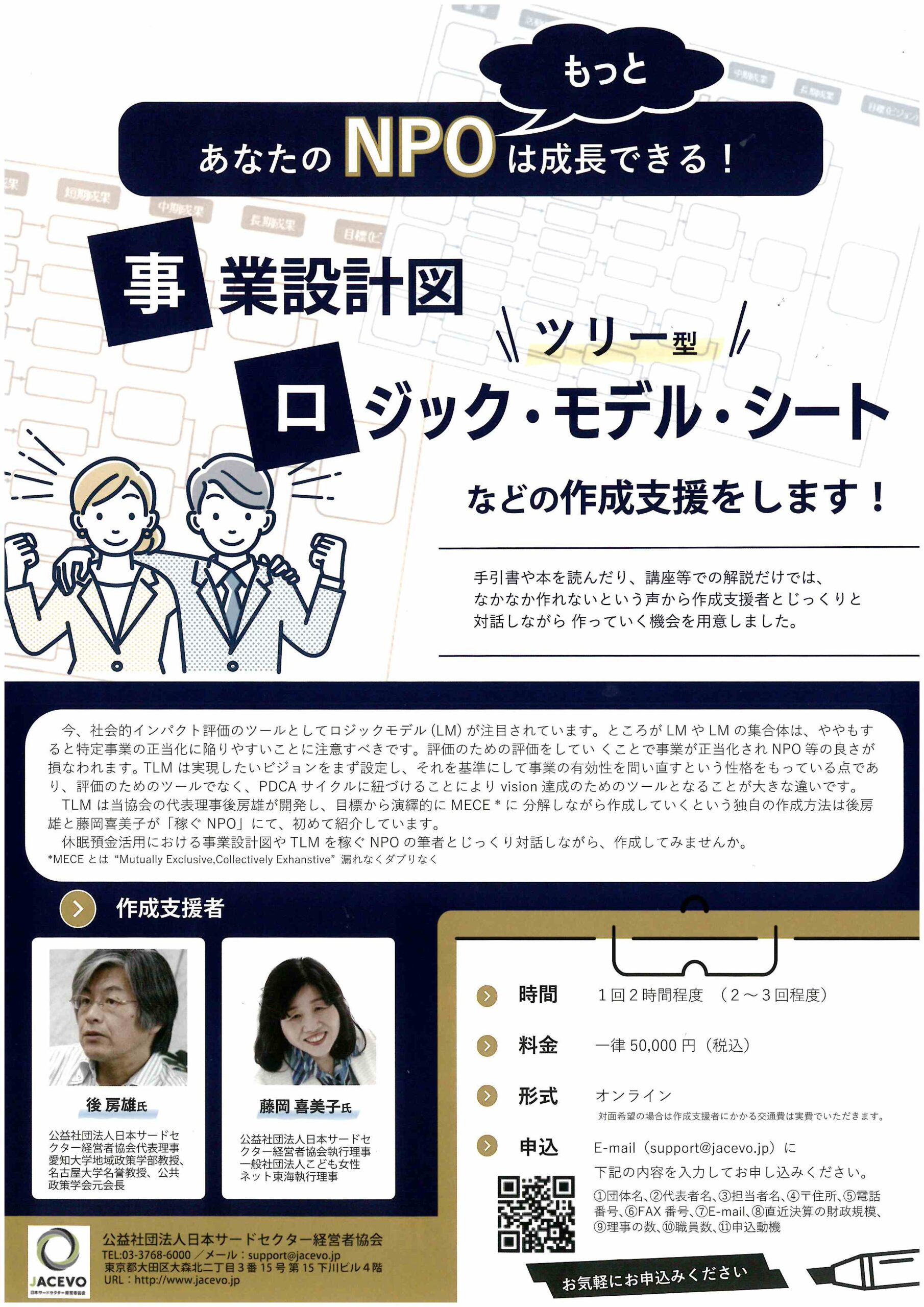 時間: 1回2時間程度 (2~3回程度) 料金: 一律50,000 円(税込) 形式: オンライン ※対面希望の場合は交通費は実費でいただきます。 PDF情報No.113951 あなたのNPOはもっと成長できる!! 手引 […]