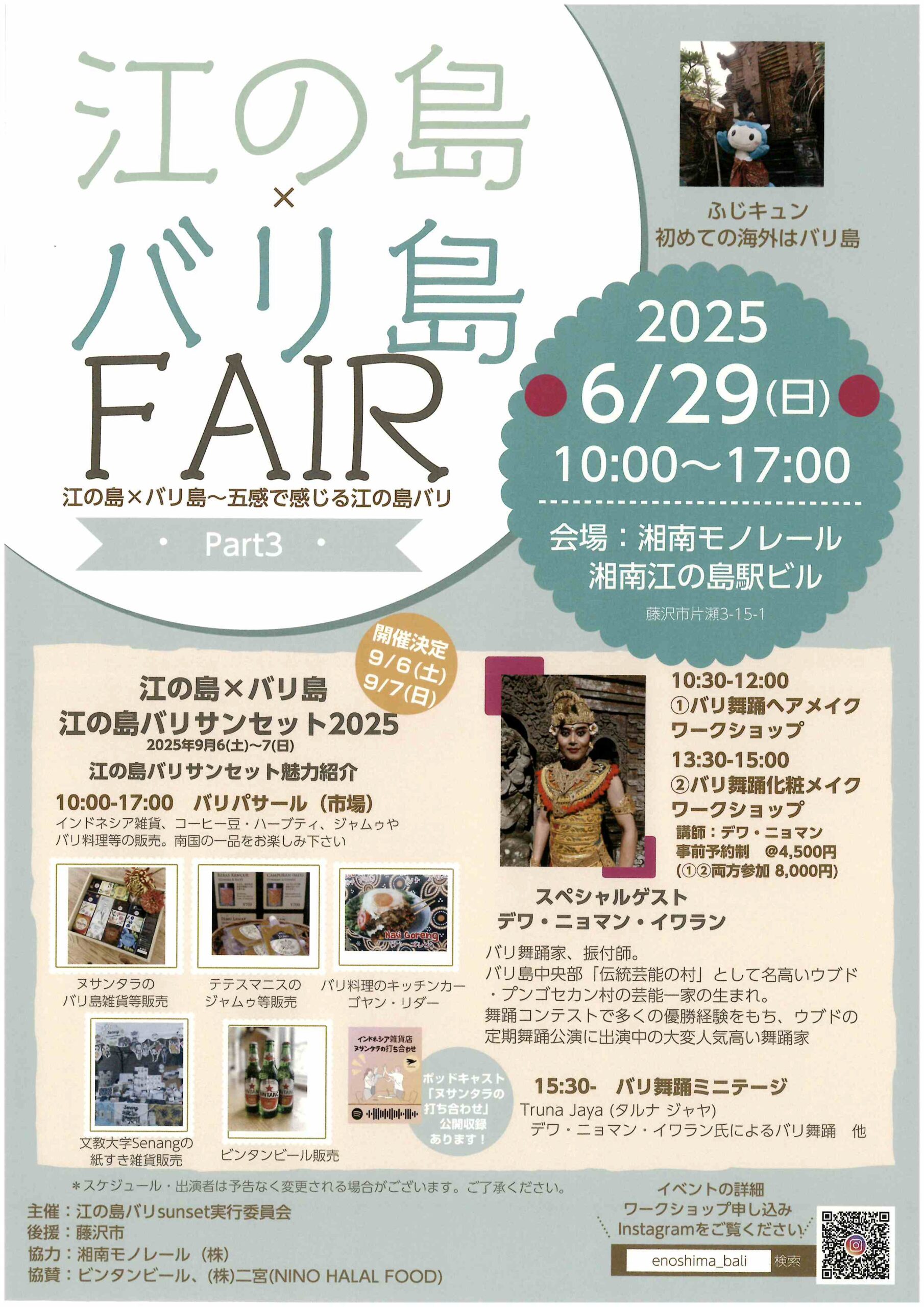 10:30-12:00 ①バリ舞踏ヘアメイクワークショップ 13:30-15:00 ②バリ舞踏化粧メイクワークショップ 講師:デワ・ニョマン 事前予約制@4,500円(①,②両方参加 8,000円) 15:30-バリ舞踏 […]