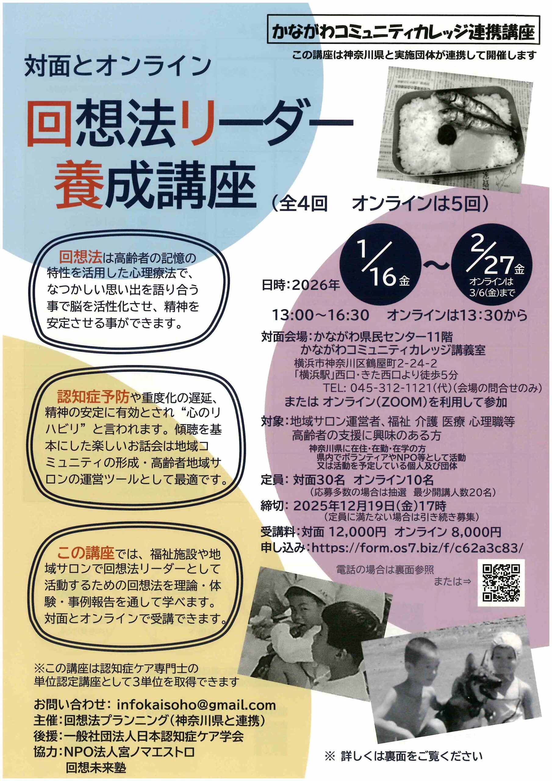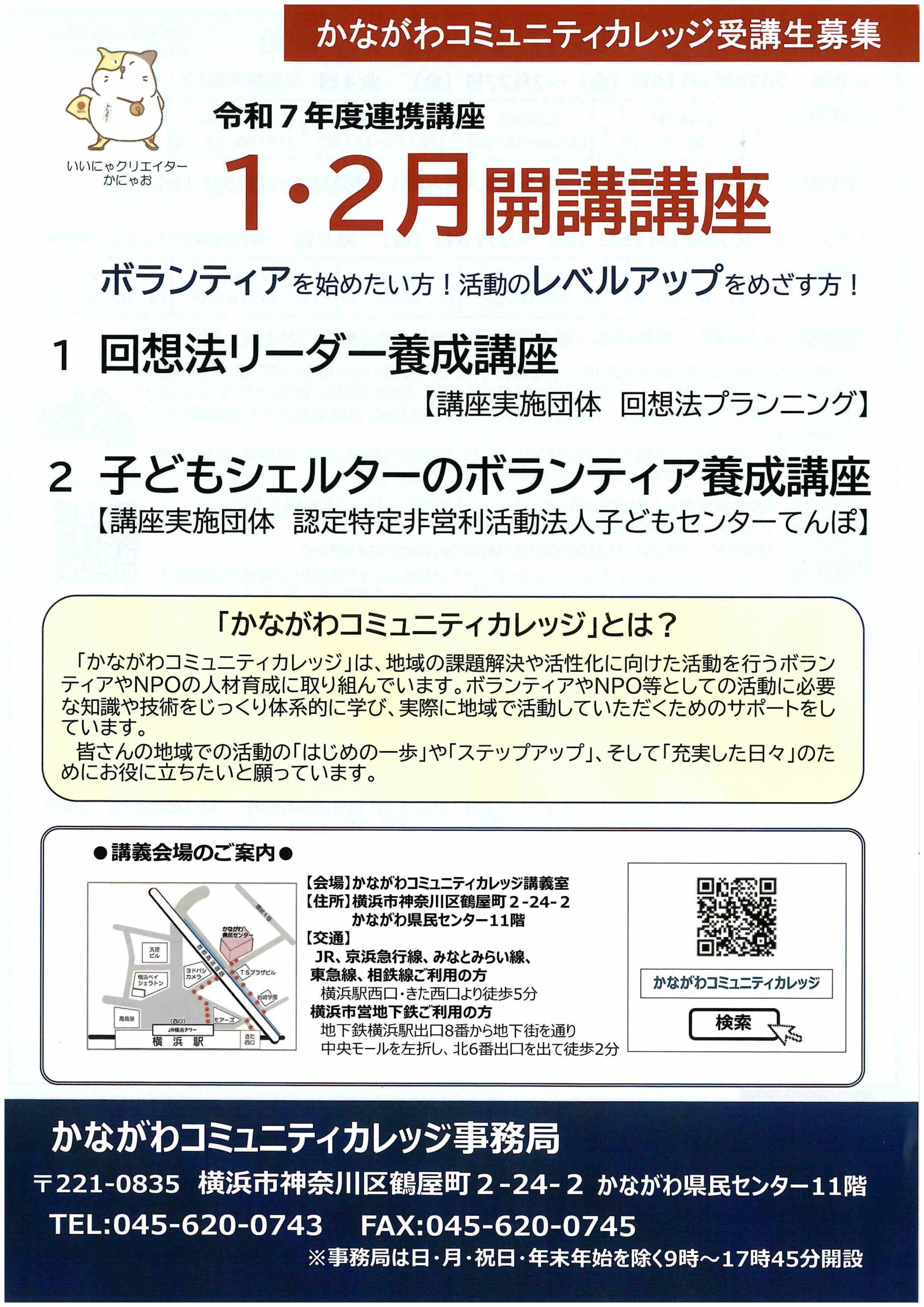 1.回想法リーダー養成講座 2.子どもシェルターのボランティア養成講座 PDF情報No.114737 ボランティアを始めたい方!活動のレベルアップをめざす方!