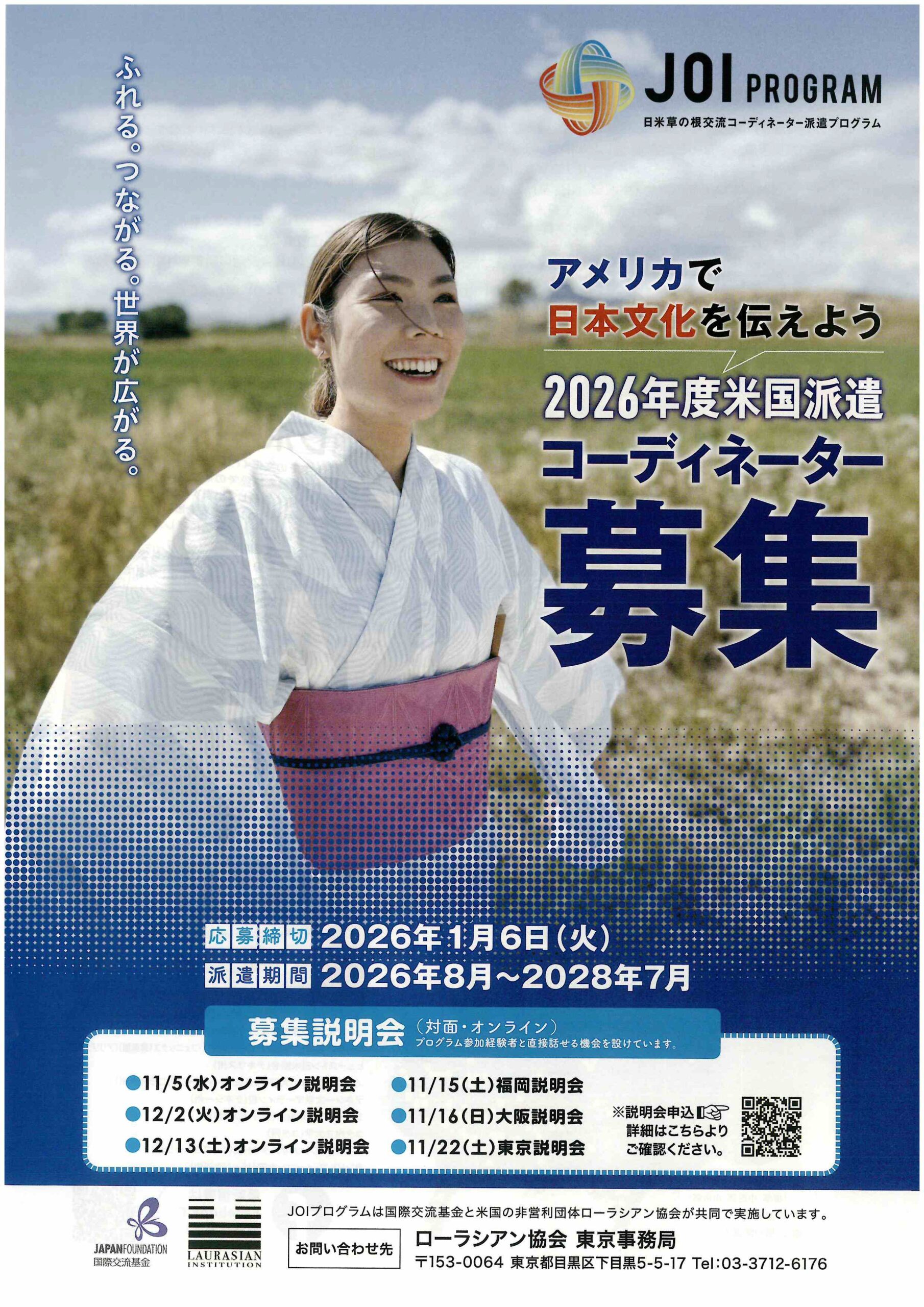 応募締切:2026年1月6日(火) 派遣期間:2026年8月~2028年7月 PDF情報No.114615 ふれる。つながる。世界が広がる。 |