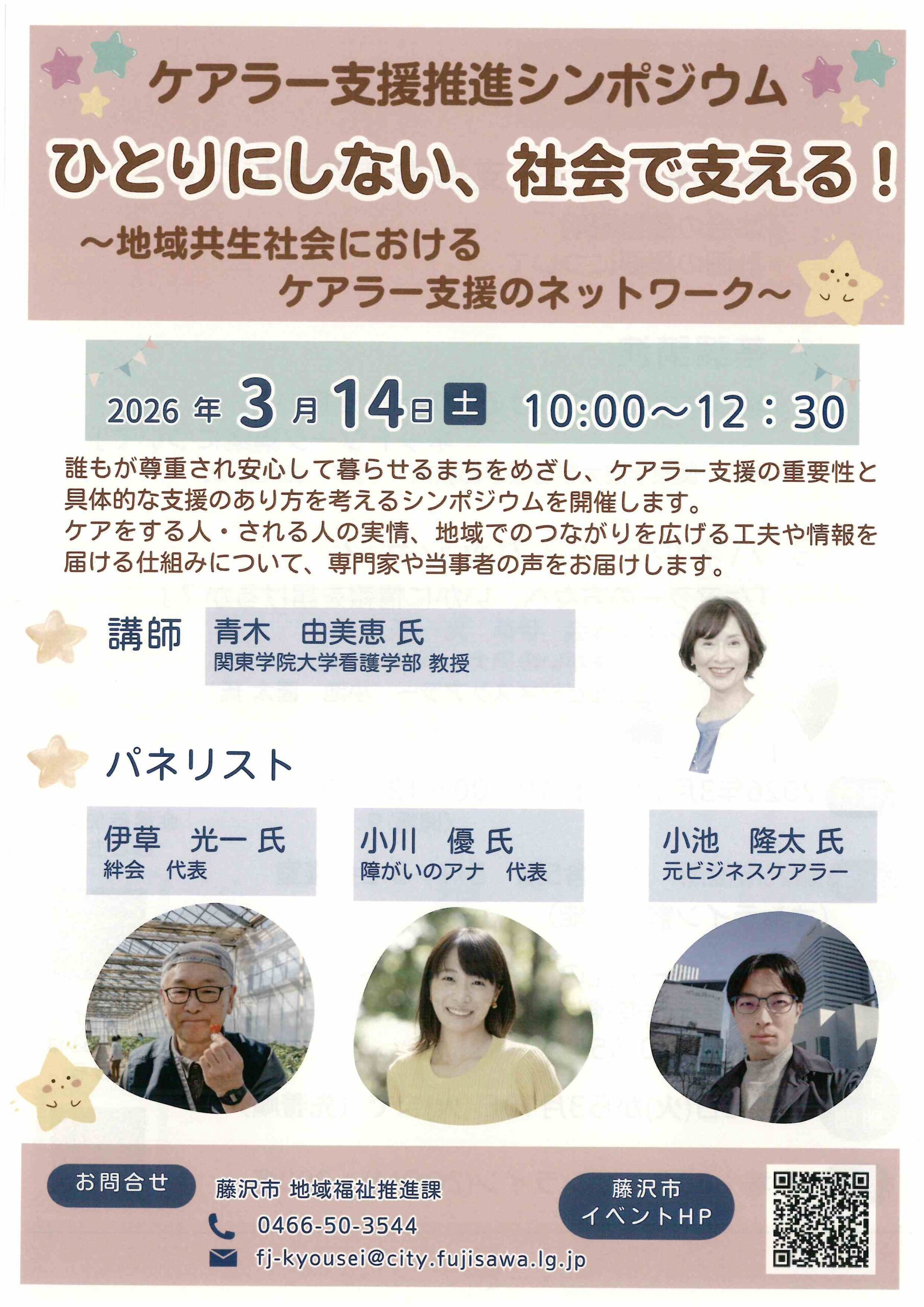 【開催日】2026年3月14日(土) 【開催時刻】午前10時~途中休憩~午前12時30分(開場:午前9時30分)※入退場自由 【会場】藤沢市役所本庁舎5階 5-1・5-2会議室 または オンライン(Zoom) ※ご不明点 […]