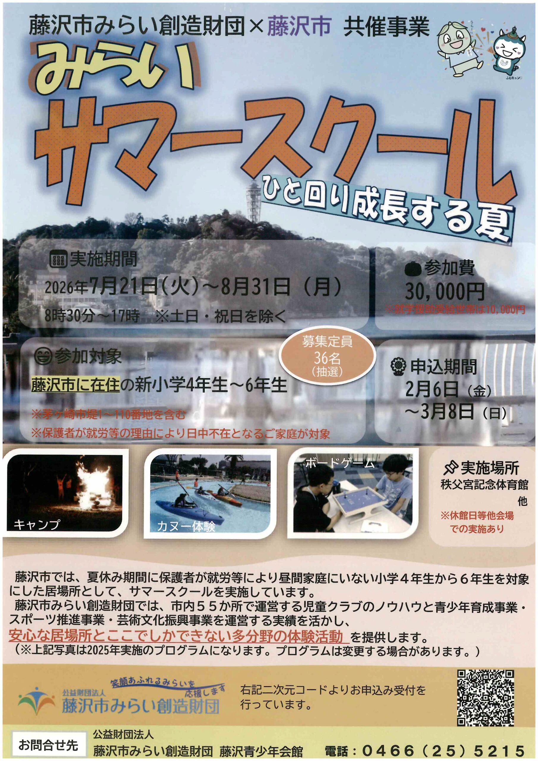 【実地期間】7月21日(火)~8月31日(月) 8:30~17:00※土日・祝日は除く 【実地場所】藤沢市まちづくり協会ビル 【対象】保護者の方が就労等の理由で日中不在となる藤沢市在住の令和8年度新小学4〜6年生 ※茅ヶ […]