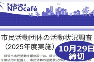 「お知らせ」の記事一覧 年末年始の休館について(推進センター・プラザむつあい) 【11/30締切】藤沢市役所・駅地下サイネージPR 団体募集 【12/8,12/15(月)】らくらくPowerPoint講座(全2回) 【12/2(火)】プラザdeカフェ ハーブを楽しむ 企業・NPO・大学パートナーシップミーティング in 藤沢~ワカモノとつくるまち~ 【10/29締切】2025年度調査「市民活動団体の活動状況調査」ご協力のお願い ※締め切りました 【11/29(土)】AIで議事録もスムーズに!NPOのためのAI活用講座 ナビゲーション 1 2 3 … 32 後へ