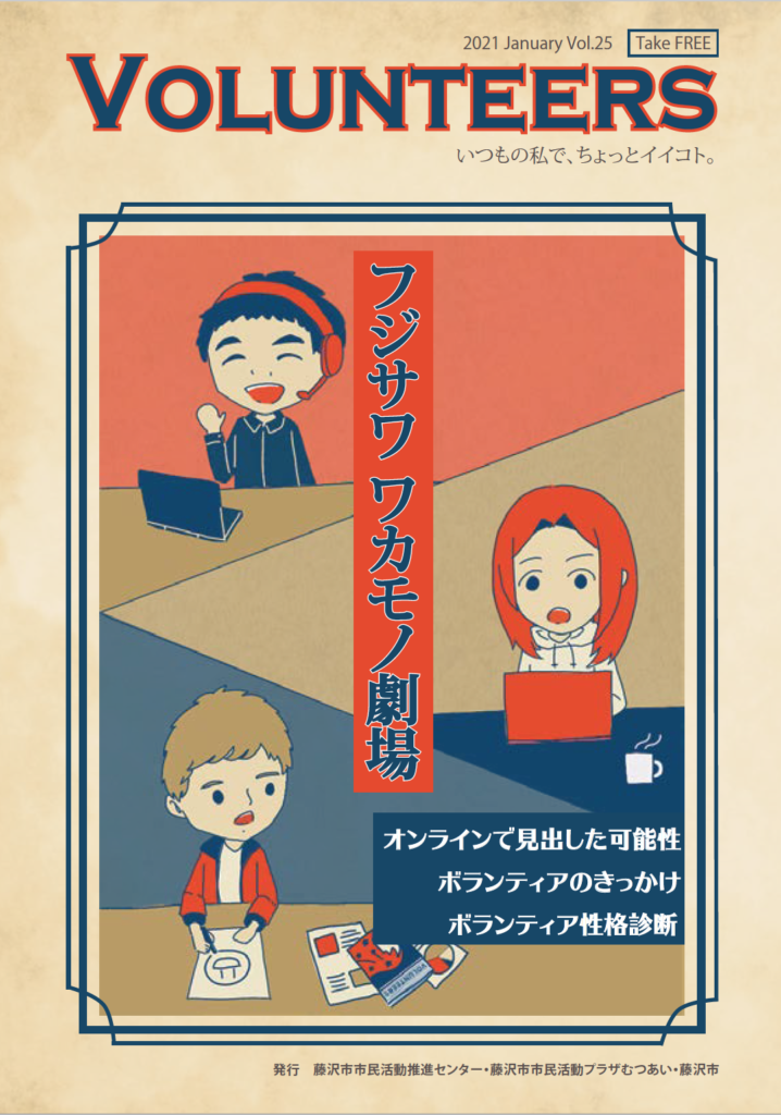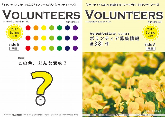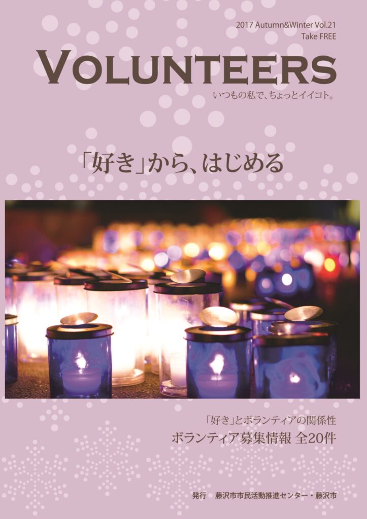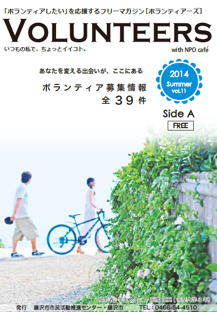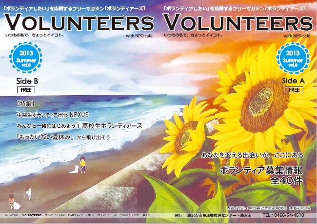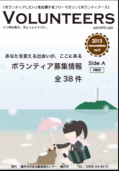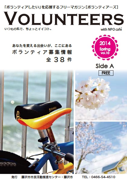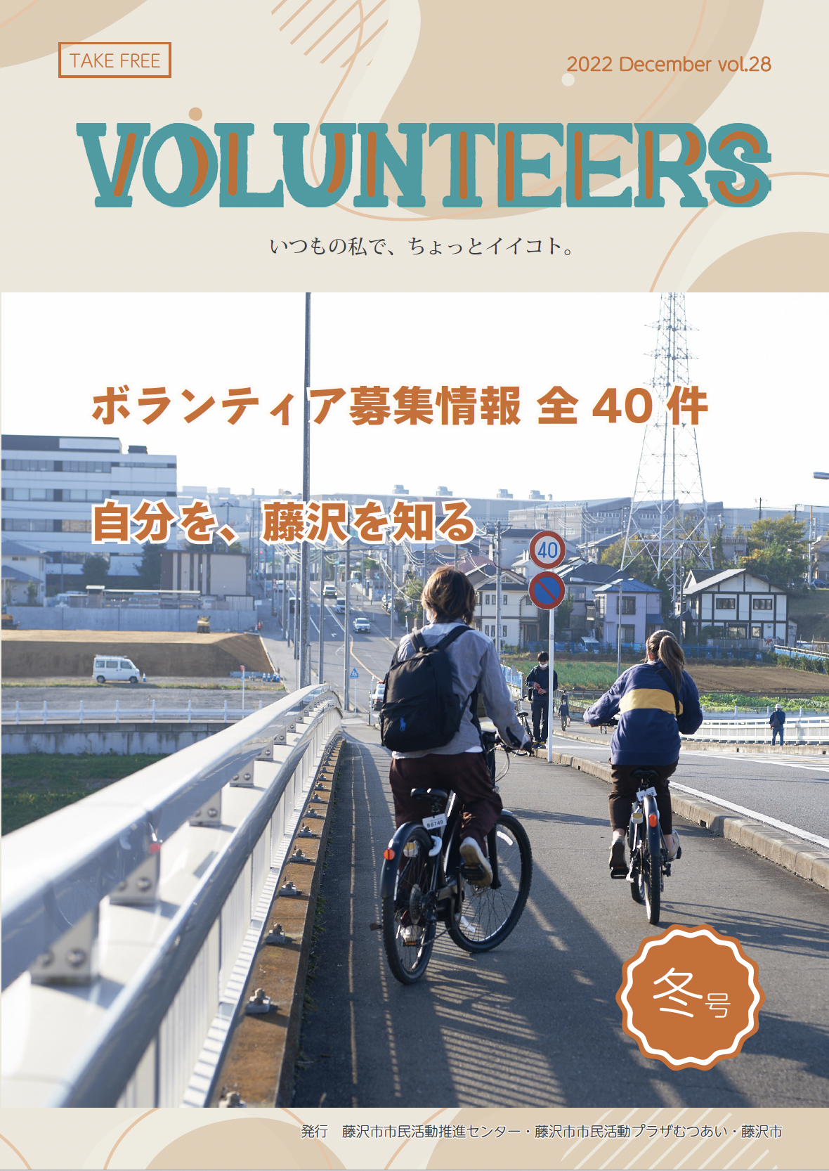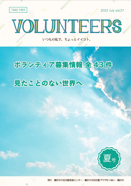 “ボランティアしたい”を応援するフリーマガジン『VOLUNTEERS(WEB版)』。市民活動推進センター/市民活動プラザむつあいに提供された、藤沢市周辺のボランティア募集情報を豊富に紹介しています。